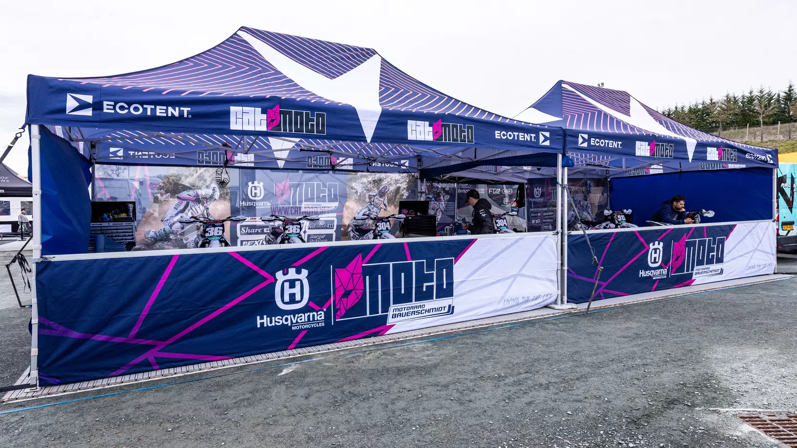 For the Cat Moto team, one thing was clear: their paddock setup should be just as strong as their on-track performance. With two custom-designed Ecotent pop-up gazebos, Cat Moto has taken their pit area to a whole new level.