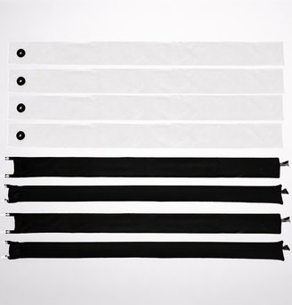 Sistema flexible sin fijación directa al suelo. Se colocan en la pata de la carpa y son ideales para instalaciones temporales y superficies sensibles. - Kit de fijación con correas y piquetas