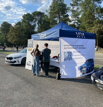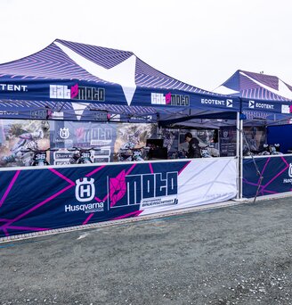 Mediante impresión digital (impresión por sublimación), se pueden imprimir fotos detalladas de alta calidad en el techo o en los paneles laterales de la carpa plegable. Para una impresión óptima, el formato de la foto debe ser 1:1 a 100 ppp o 1:100 a 300 ppp.