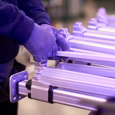 Cuando hablamos de la durabilidad de nuestras carpas plegables, también nos referimos a la solidez del color de los tejidos. De conformidad con las normas europeas DIN EN ISO 105-B02 y DIN EN ISO 105-A02, nuestros tejidos han obtenido una escala de azules de 4,5-6,5 sobre un máximo de 8 y una escala de grises de 3,5 sobre un máximo de 5. La norma especifica un método de ensayo para determinar la resistencia del color de los tejidos de todo tipo y en todos los estados de transformación a la acción de la luz artificial correspondiente a la luz natural. Nuestros tejidos aprobaron con nota incluso al exponerse de forma prolongada a la luz solar.